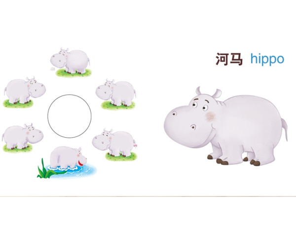 本书通过儿歌式的谜语,和洞洞中露出的一部分动物形象,来猜出这个动物是谁。翻开页,会出现完整的动物形象,可以认识这种动物,知道动物的名字和英语,中间穿插这个动物的趣味益智游戏,如观察、发现、找不同等。另外,还会利用之前动物学校里的一些问答样图,改编成简单的问答穿插其中,使这套洞洞书知识性更强,内容更丰富。