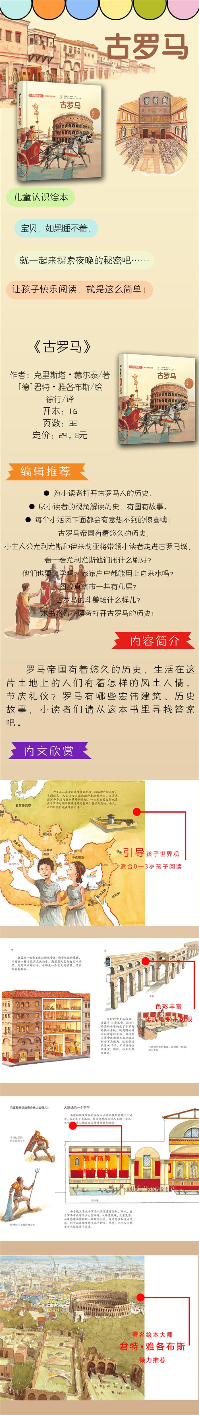 罗马帝国有着悠久的历史,生活在这片土地上的人们有着怎样的风土人情、节庆礼仪?罗马有哪些宏伟建筑、历史故事,小读者们请从这本书里寻找答案吧