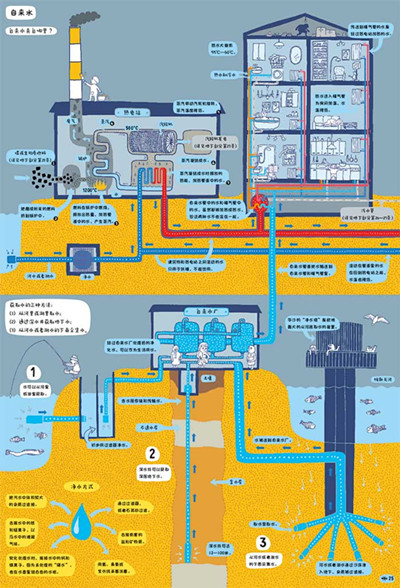 《地下水下》是波兰畅销书作家亚历山大米热林斯卡和丹尼尔米热林斯基继《地图(人文版)》后的新作,是一本全手绘的精装百科绘本。它与8开的《地图(人文版)》一样大,但翻开的形式很特别。它的每一个对页展示了一个横切面,介绍“地下”和“水下”世界。
