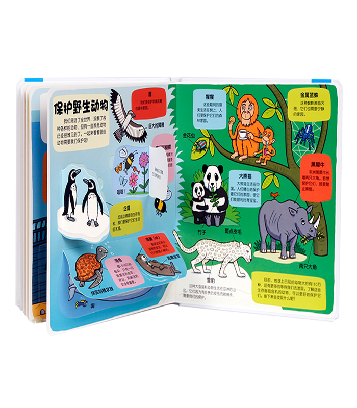 《各种各样的动物》怎样照顾宠物?丛林里都生活着哪些动物?怎样保护野生动物?极地动物是如何适应寒冷气候的……有关动物的小秘密,你究竟知道多少呢?翻开每张翻翻页,认识了解它们的家,看看它们喜欢吃什么,爱做什么。活泼幽默的语言,趣味盎然的图画,让小读者在笑声中轻松学知识。有趣的翻翻页设计,增强互动,激发小读者的探索兴趣!