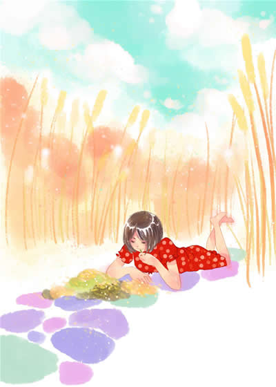 睿智是自己走进这幅画里的。她第一次知道北方深秋的柞叶要红于枫叶;她第一次目睹了三只喜鹊怎样在空中自由地歌唱;她第一次被大自然的风浸透了全身,总渴望喊一声。