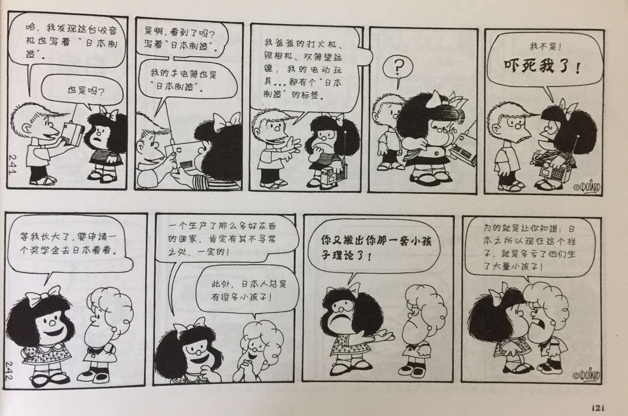别看玛法达岁数不大、个头不高,她可算是世界上最著名的小女孩了。仅在拉丁美洲,每册漫画就可以销售五百万册!