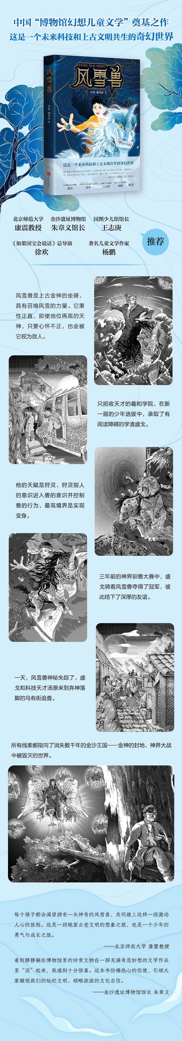 风雪兽是上古金神的坐骑,具有召唤风雪的力量。它秉性正直,即使地位再高的天神,只要心怀不正,也会被它视为敌人。 只招收天才的羲和学院,在新一届的少年选拔中,录取了有阅读障碍的学渣盛戈。他的天赋是狩灵,三年前的神界驯兽大赛中,盛戈骑着风雪兽赢得了比赛。 一天,风雪兽神秘失踪了。盛戈经过追查发现,所有线索都指向了消失数千年的金沙王国——金神的封地、神界大战中被毁灭的世界。