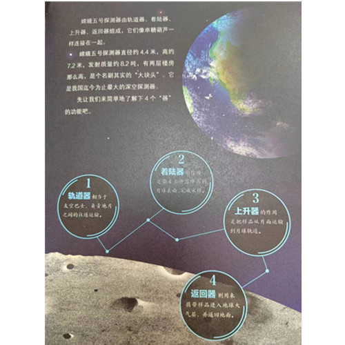 翻开这套书,犹如穿过一道时空之门,冰箭飞天震耳欲聋的轰鸣声骤然响起,蟾宫取宝激动人心的场景跃入眼帘。我希望这套书能让小读者们点燃梦想的火焰,去追逐心中的星辰大海! —吴伟仁 中国工程院院士,中国探月工程总设计师 好奇点亮人生,探索引领成功。中国航天正在起飞之时,愿小读者们踏着“胖五”升空和嫦娥五号采样的足迹,在探索浩瀚宇宙的星光大道上放飞梦想! —胡浩 中国探月工程三期总设计师 人类进步源于对未知的探索。这套书将带领孩子们走近航天,了解长征五号火箭飞天和嫦娥五号月球取土的奥秘,在孩子们的心中播撒下崇尚科学、探索求知的种子。 —张荣桥 中国首次火星探测任务(天问一号)工程总设计师 显示全部信息