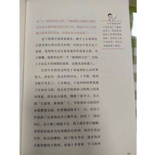统编语文教材中的“快乐读书吧”栏目推荐了多种多样的经典图书,引导学生课外阅读,培养阅读兴趣,扩大阅读量,逐步形成良好的阅读习惯。然而,很多学生有了阅读兴趣,却写不出自己的阅读体会,一说到写读后感就头疼。 本书汇集了统编语文教材“快乐读书吧”栏目推荐的多部经典童话及寓言的数十篇读后感。这些经典作品包括《安徒生童话》《稻草人》《格林童话》《爱丽丝漫游奇境》《骑鹅旅行记》《中国古代寓言》《中国现代寓言》《伊索寓言》《克雷洛夫寓言》《拉封丹寓言》。对于每部经典作品,多位小学生从不同角度写成了精彩的读后感,何捷名师出版工作室的各位老师化身为小男孩“想当然”和功力深厚的“五读教主”写下了精彩的评语,帮助小学生总结阅读感受,提升阅读效果。