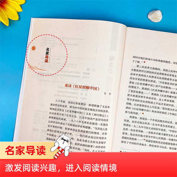《红星照耀中国》(Red Star Over China),又名《西行漫记》,是美国著名记者埃德加·斯诺的不朽经典名著,是家喻户晓的纪实文学作品,斯诺让世界次看到了中国共产党、中国红军和革命根据地的真实面貌。这部经典作品多方位展现了中国共产党为民族解放而做出的不懈努力,他们乐观向上又甘于奉献,在艰苦卓绝的困境中奋力拼搏,勇敢地探寻着中国前进的方向。作为对上世纪30年代中国革命真相的真实报道,《红星照耀中国》从1937年初版至今,历经时间淘洗,它的活力从未衰减过,它在全世界以近二十种文字翻译出版,几乎传遍了每一个国家和地区,被誉为研究中国革命的经典百科全书。斯诺用毋庸置疑的事实向世界宣告:中国共产党及其领导的革命事业犹如一颗闪亮的红星,不仅照耀着中国的西北,而且必将照耀全中国,照耀全世界。