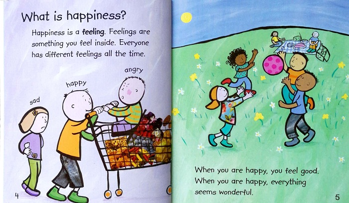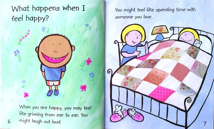 每册都以简单的问答形式,吸引孩子的注意力。书中的句子用词非常简单直白、浅显易懂,在重复的句式中让孩子学习常用单词、掌握基础句型。比如,害羞中,以What is shyness?提问,再循序渐进地以问答的方式,让孩子学会接受、理解和应对害羞的情绪。