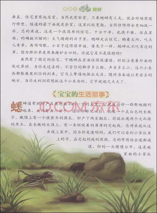 大自然就是一本最好的百科全书,它总是带给我们无尽的美好。田野里的一朵小花、路旁的一棵大树、天空的一朵白云……都有说不完的故事。只要细细察看,你就会疚得无法言传的惊喜与快乐。法布尔就在这里找到了他一生的好朋友——昆虫。现在让我们跟随法布尔的脚步一起去昆虫的世界一探究竟,那里有会唱歌的蝉、能干的泥水匠舍腰蜂、卖力滚着粪球的蜣螂、美丽绚烂的大孔雀蛾、不停织网的圆网蛛……你会被这些“小家伙”的毅力所震撼,也会为它们的互助友爱所感动,更会为它们的种种绝技欢呼喝彩。昆虫的精彩和奥秘都在这本为你精心编制的《昆虫记》里。精美细腻的百余幅插图、生动百趣的故事,让你在品读故事的同时轻松愉悦地走进这个美好的昆虫乐园,在得到丰富昆虫知识的同时也疚得了完美的视觉享受。让我们一起在法布尔的昆虫王国里畅游,与这些小精灵一起舞动。让美好的少午时光幻化出缤纷的梦,让青春的记忆里充满欢声笑语。