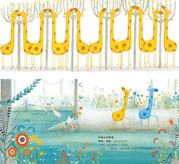伯蒂是一只长颈鹿,他和家人生活在一起。他们每天吃树叶(啊呜啊呜)、喝泉水(滋溜滋溜),还把脖子卷起来打个小盹儿(呼噜呼噜)。可有一天,家人不见了。幸好这时,他遇到了另一只长颈鹿,只不过,他是蓝色的。蓝色的长颈鹿遇到黄色的长颈鹿,会发生什么呢?