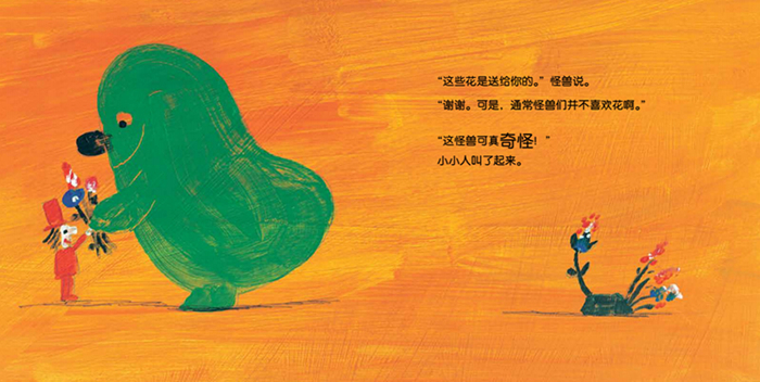 所有人都认为怪兽不喜欢花草,不喜欢动物,看起来非常可怕,但是小小人遇到了一个与众不同的怪兽。他大方、善良、喜欢赞美别人,他还爱吃让小小孩儿害怕的跳蚤。友谊是不期而遇的,怪兽和小小人成为了一对取长补短的好朋友。