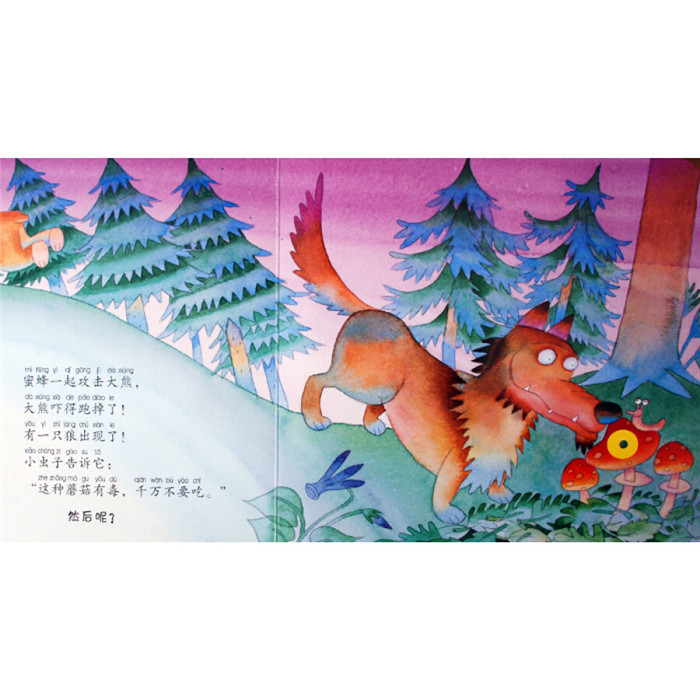 只棕熊看见了一只小蜜蜂,一只小蜜蜂也看见了一只棕熊。棕熊想:“有蜜蜂的地方肯定有蜂蜜……我要悄悄跟着这只小蜜蜂。”而小蜜蜂想:“有熊的地方肯定有麻烦……·我要快点飞回家。”9 于是一场大追逐开始了—而接下来引发的麻烦,比小蜜蜂想象的要多得多