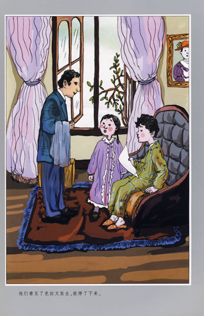 第二天,家里一片混乱,玛丽躲进了儿童室,所有的人都忘记了她。没有人想到她,没有人需要她,发生的许多事她一无所知。一连几个小时里,玛丽不是哭就是睡。她只知道有人病了,她听到了神秘而可怕的声音。有一次她溜到餐厅里,发现那里空荡荡的,桌子上放着吃了一半的饭菜,椅子和盘子的样子看上去是用餐的人由于某种原因突然站起来时将它们匆匆推开的。玛丽吃了一些水果和饼干,因为口渴,她又喝了几乎满满一杯酒。酒是甜的,她不知道酒有多凶。很快她就觉得晕乎乎的,她回到儿童室里,又把自己关在里面,房子里的哭声和匆匆忙忙的脚步声令她非常害怕。酒劲使她昏昏欲睡,她简直睁不开眼睛,就躺在自己的床上,很长时间里什么都不知道了。