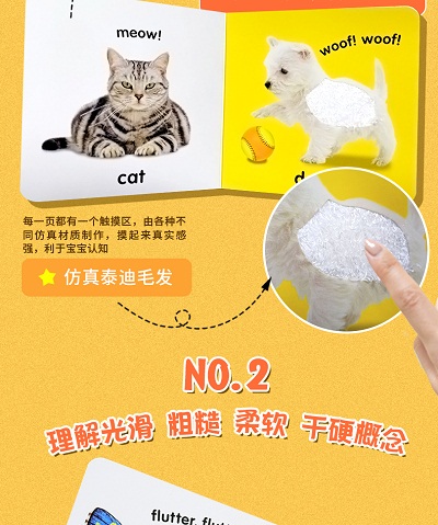 DK Baby Touch and Feel 早教触摸绘本 适合给宝宝早教使用,让宝宝有真实的触感,吸引宝宝的注意力,让宝宝对这本书爱不释手! 推荐这本美国婴儿早教触摸绘本,里面有模仿皮肤绒毛,宝宝十分喜欢,而且书本质量很棒~