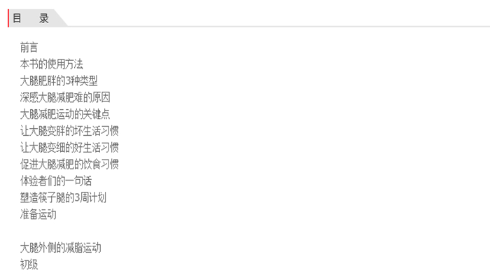 本书中的瘦腿训练将大腿细分为三个部分进行运动方法的细致讲解。同时你还可根据自己苦恼的具体部位和自身的运动能力,选择初级或高级的训练方法,一步一步循序渐进。在这本书的运动世界里,并没有很严苛的法则,只需下定决心,坚持一天做一个动作,动作标准到位,即可轻松实现瘦腿的目标。