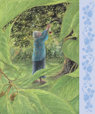 弗萝莉被花园里的这一幕美景惊呆了。她忍不住揉了揉眼睛。不会错的,眼前的一切并不是梦。那些炫目斑斓的色彩让她透不过气,她觉得自己的心跳得特别快,脸上也麻酥酥地痒。有那么一刻,她甚至忘记了翅膀上钻心的痛。她爬起来,走到门口坐下,把两只脚悬在洞口外,不住地晃着。风轻轻地摩挲着悬在她头顶上方摇曳轻舞的樱桃花,她就近拽下几片花瓣来,把里面的露水倒进嘴里。然后,