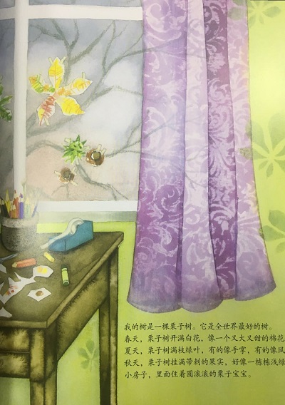 我要赶紧收拾东西!睡衣、毯子、手电筒、枕头。果汁、香蕉、面包,还有我心爱的书。这样我就能睡在树上啦!哈哈!工人们肯定大吃一惊:怎么回事?树上住了个小姑娘!我蹬开梯子,其他人就上不来啦!从现在起,栗子树就是我的家。我的树是一棵栗子树,它是全世界*好的树。他们说栗子树死了,明天就要锯掉。但我知道,它只是睡着了而已。