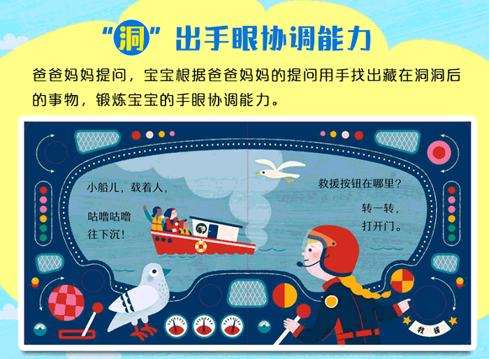 3.锻炼孩子的逻辑能力:书中的洞洞设计巧妙,在联系前后图画中起着重要作用,孩子能够在翻页过程中寻找到洞洞前后画面的逻辑。