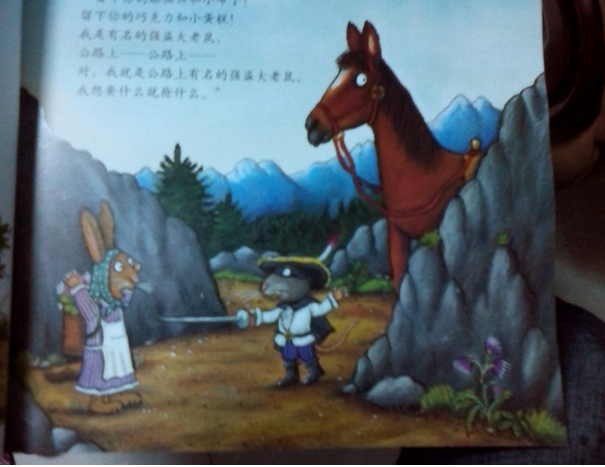 强盗大老鼠高声喊道:“你是不是有很多蛋糕和巧克力?”山洞里也传出回答:“巧克力,巧克力,巧克力……”