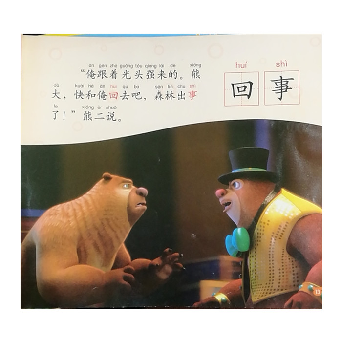 图书内容丰富,大图大字,拼音标注,板式简洁。每册图书设计8个生字游戏,归纳3张生字表,并随书附赠2张识字卡,让孩子在享受《熊出没之熊心归来》大电影故事的同时,认识生字,收获知识,快乐成长!