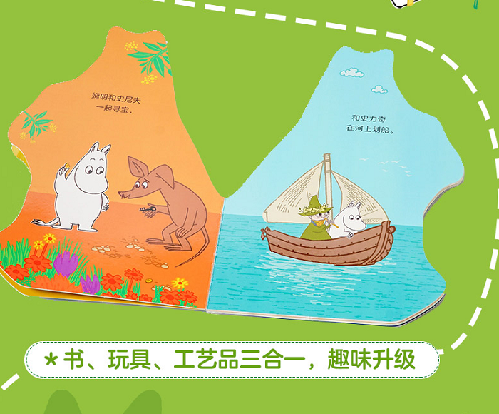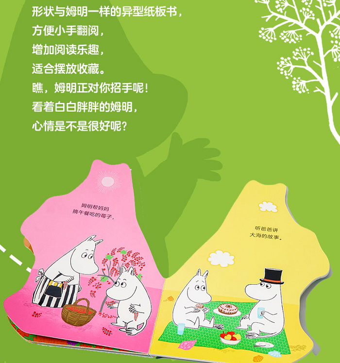 5、形状与姆明一样的异型纸板书,不仅增加阅读乐趣,也适合摆放收藏。