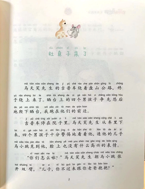 dù zhēn zǐ lái le 杜真子来了 mǎ tiān xiào xiān sheng de ji pǔ chè rào zhe pán shān gōng lù zhōng 马天笑先生的吉普车绕着盘山公路,终 yú rào shang lai le shài tái shang de si gènán hái zi zheng xiàn kng hòu 于绕上来了。晒台上的四个男孩子争先恐后 de pá xia shài tái w pǎo zài tā men de qián bian 地爬下晒台,我跑在他们的前边。 jí pǔ chě tíng zài yuàn zi li mǎ tin xiào xiān sheng cóng chēli xià 吉普车停在院子里。马天笑先生从车里下 lai sì gè nán hái zi shí fen jing tì de kàn zhe tā lián tā de ér zi 来,四个男孩子十分警惕地看着他,连他的儿子 mǎ xiǎo tiòo jiàn dào tā liǎn shang yé méi you shén me gāo xìng de biǎo qíng 马小跳见到他,脸上也没有什么高兴的表情。 nǐ men zen me la mǎ tiān xiào xiān sheng cháo mǎ xiǎo tiào zhāng “你们怎么啦?”马天笑先生朝马小跳张 kai shuÃng bì ér zi nǐ bú guò lai gēn nǐ lǎo bà bào bao 开双臂,“儿子,你不过来跟你老爸抱抱?"