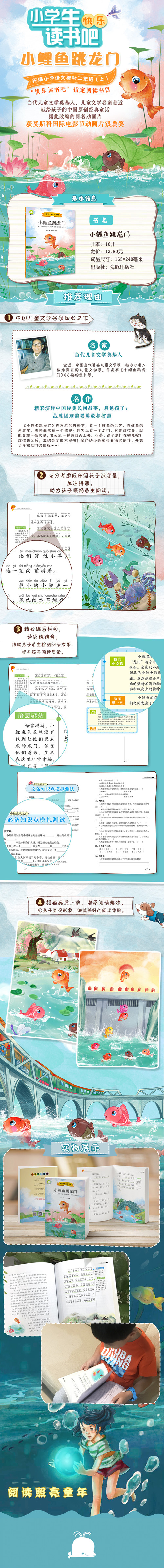 《小鲤鱼跳龙门》在古老的石桥下,有一个鲤鱼的世界。在鲤鱼的世界里,流传着这样一个传说:世界上有一个龙门,只要跳过去,就能变成一条大龙,像云彩一样游到天上去。可是,这个龙门在哪儿呢?跳过去以后,真的会变成大龙吗?金色的小鲤鱼带着他的同伴,开始了寻找龙门的旅程……这个故事与民间故事《鲤鱼跃龙门》相比,有了新的教育意义:教育孩子面对困难要勇往直前,还要有做事的智慧。