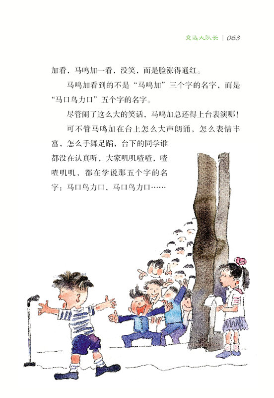 还好,老师就报了一个马鸣加,马鸣加是站起来大声回答的,老师表扬他声音响亮。不过马鸣加坐下去的时候也太响亮了,是“咚”的一声,老师没有再表扬他,而是看看他。