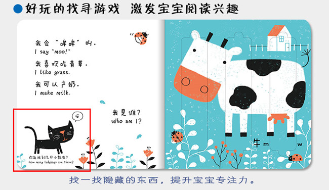 《小小手指推拉滑板书》是专为1~4岁幼儿精心打造的玩具书,所选内容是宝宝非常感兴趣的动物园。本书通过猜谜式的中英双语、“滑板 拼图”的巧妙纸艺形式,以及有趣的互动找寻游戏,让知识生动形象地展示出来。宝宝通过猜、读,引发思考,收获知识;通过推、拉、滑、拼,锻炼小手灵活性;通过玩找一找游戏,提升专注力。
