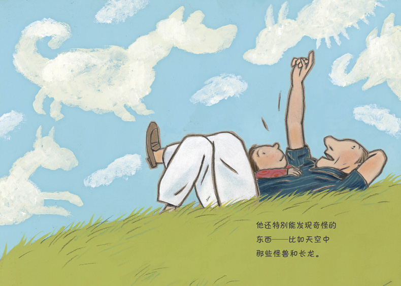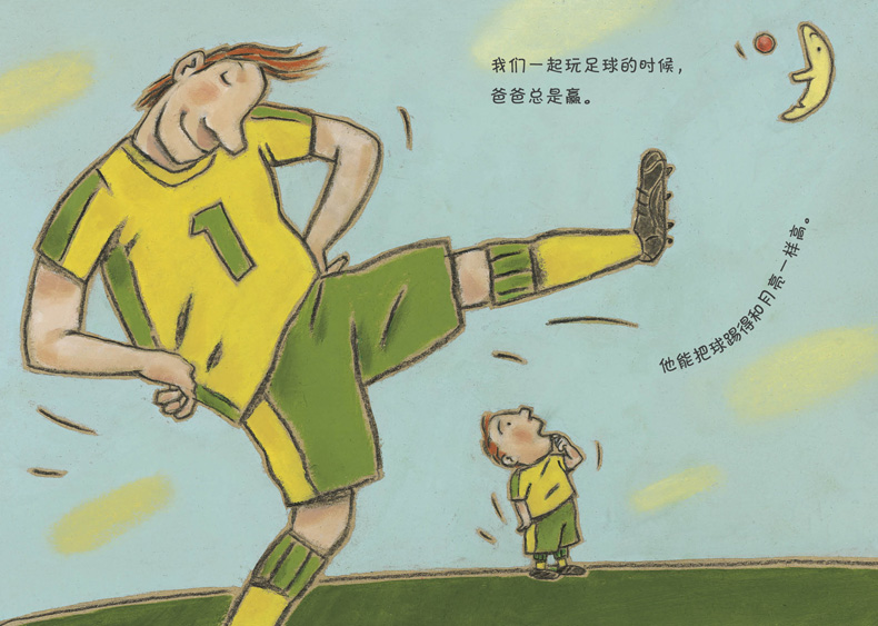 我拥有世界上最棒的家人。我的爸爸是巨人,他打喷嚏的时候,就像一阵龙卷风。我们一块儿踢足球的时候,他能把皮球踢得和月亮一样高!我的妈妈会魔法,她唱歌的时候, 蝴蝶会飞来倾听她的歌声。我做噩梦的时候, 她会把怪兽赶得远远的。