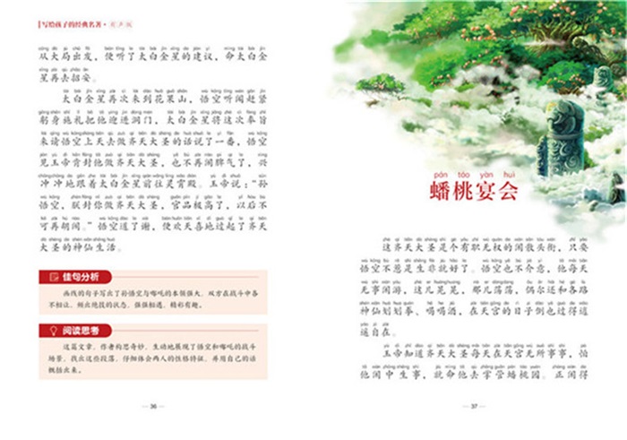 《西游记》是明代小说家吴承恩以积极浪漫主义手法创作的中国古代第一部浪漫主义长篇神魔小说。全文讲述了孙悟空、猪八戒、沙僧以及白龙马保护唐僧西行取经,师徒五人沿途历经各种艰险,一路斩妖除魔,斗智斗勇,化险为夷,最终到达西天、取得真经的故事。作品中塑造了众多栩栩如生的形象,将神魔世界的善恶情仇和现实社会巧妙结合,歌颂了师徒几人不畏艰险、英勇无畏的精神,充分表现了作者现实主义的情怀,以及宣扬正义、惩处邪恶的思想主题。