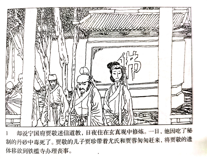 宁府的家长贾敬食金丹而死。因事物繁多,尤氏便把自已的继母和两个妹妹接来,帮忙照料家务。贾琏偷娶尤二姐为二房,并把她安置在荣国府外。贾珍却串通了贾琏想打尤三姐的主意,不料还没上手,就让刚烈自傲的三姐狠狠地嘲弄了一番。三姐发誓,非柳湘莲不嫁。贾琏代向湘莲提亲,湘莲以祖传鸳鸯剑给三姐作为定礼。柳湘莲回京后知尤三姐是贾珍妻妹,不免后悔,向贾琏索要宝剑。尤三姐悲愤不已,自刎而亡。