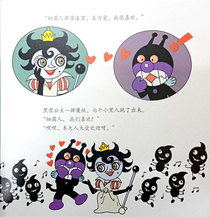 面包超人是制作面包的果酱大叔所做出的红豆面包,因刚好生命之星坠落在面包上而诞生。《面包超人和黑雪公主/面包超人友情故事系列》主要讲述的是喜欢搞破坏的细菌人和黑雪公主把大家的身体弄得黑乎乎的,城市被弄得脏兮兮的,还好面包超人带着一辆小火车赶来帮助大家,把大家都重新洗干净,并且感化了黑雪公主,让她回到了自己的星球。