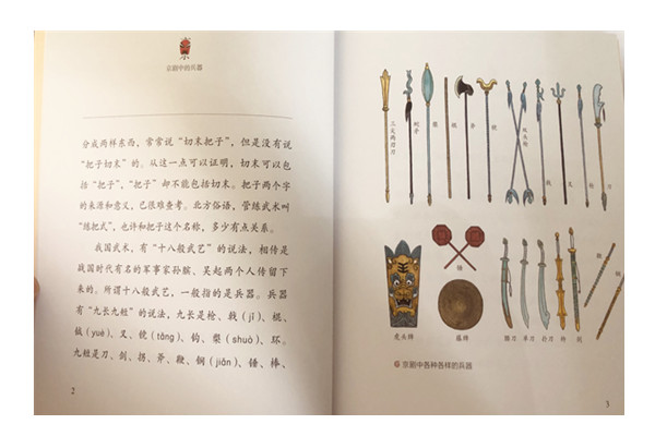 系列共包含7本书,分别是《京剧中的人物》《京剧中的脸谱》《京剧中的交通工具》《京剧中的兵器》《京剧中的风雷雨雪》《京剧里用的东西:切末》《京剧中的舞蹈》。作者不会刻意解释“生旦净丑”“唱念做打”等等枯燥的术语概念,而是从孩子们熟悉的日常讲起,将晦涩难懂的京剧变成了与孩子衣食住行相关的活动,让孩子真正亲近京剧的文化内涵。此外,作者手绘的大量插图,皆极富神韵,不仅能帮助孩子看见京剧的门道,还能让他们感受京剧“有声皆歌,无动不舞”的美。