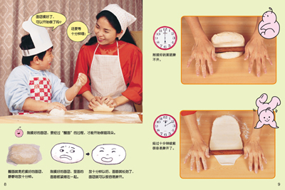 为了兼顾各年龄层,文字有大小、深浅之分,图画也有大小的差别;但是彼此间会有自然的连贯。幼儿是从图像中学习到文字的具体意义,而并非借由抽象的汉语拼音字母。因此,我们有意未强调汉语拼音和认字,而是在潜移默化中影响孩子,引导孩子学习。