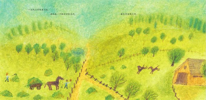 马儿希望能和主人永远在一起,成为朋友。柔和明亮的蜡笔画里有一些童稚的笔触,展开马儿日常温馨的一幅幅生活场景,就像我们心中的美好世界,让人觉得格外温暖。