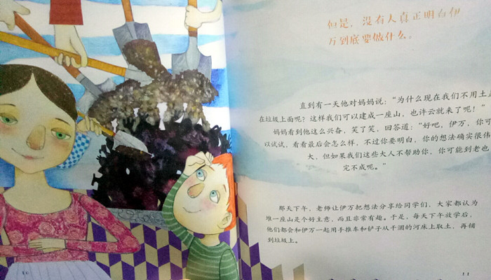 本书是西班牙著名儿童心理学家及情感教育专家伊巴洛拉女士创作的童话绘本故事。小伊万居住的小镇被大量的生活垃圾包围着,就连云和雨都不在光临小镇。一天,老师说云和雨的形成过程中,山脉起了一定的作用。伊万想,如果把镇上的垃圾堆成一座高山,云会不会飘来?雨会不会落下呢?说干就干。后来,整个镇上的人们都参加啦。一座人造的山峰形成啦!某一天夜里,雨悄悄地下了起来……本书的教育意义有两点:其一,提高幼童的环保意识。了解垃圾如何产生,对人们的生活有什么危害,并阐述了雨与云的关系;其二,提高幼童的想象力,锻炼幼童的实践能力。小伊万善于思考、敢想敢做的品质正是小朋友们需要学习的。另外,学会沟通也是很重要的一点。此书可读性强。