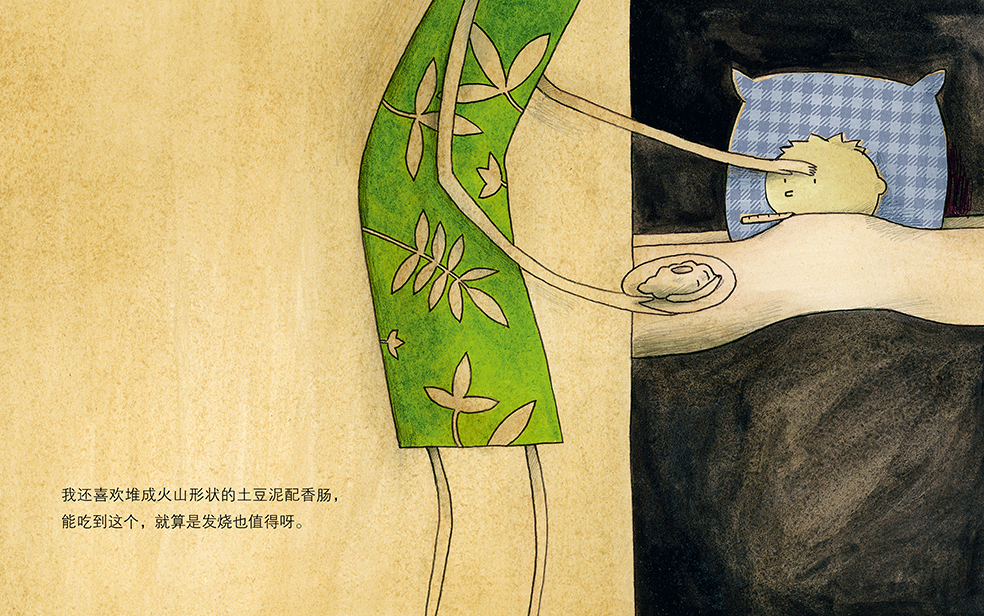 妈妈不是总用命令的语气跟亚瑟说话,《亚瑟,喝汤!》里,妈妈照顾发烧的亚瑟吃东西的画面,细腻无声,但是透着浓浓的爱意。