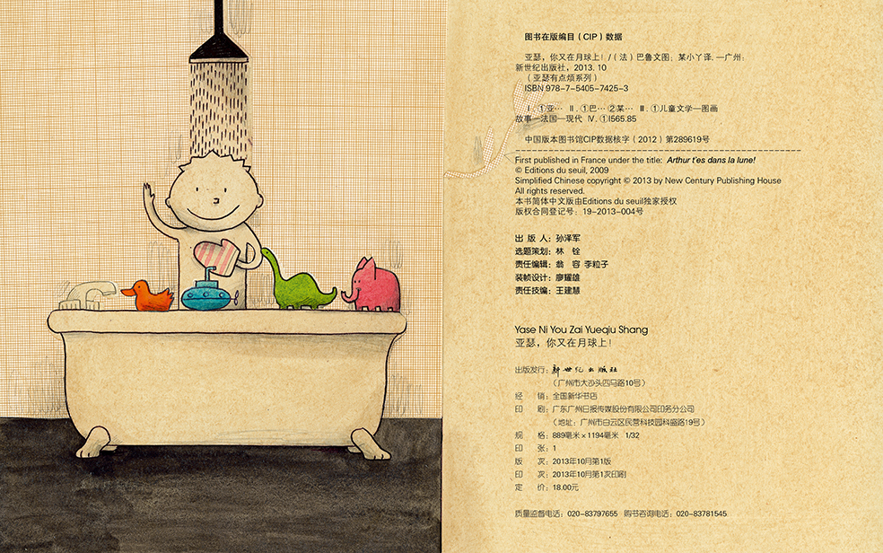 《亚瑟,你又在月球上!》,“在月球上,怎么想都可以。这是妈妈说的。”这一次,亚瑟很开心,他在浴缸里微笑着,脑子里一定是想着他的小象变成了一只大象,在用长鼻子当花洒给他喷水洗澡呢。