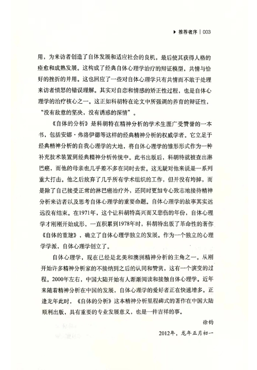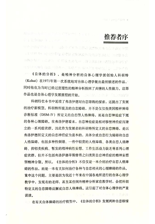 作为一名精神分析学家、教师和学者,海因茨·科胡特是20世纪最重要的知识分子之一。科胡特反对许多主流精神分析学家的观点,挑战正统弗洛伊德和精神分析思想在美国医疗领域的控制。《自体的分析:一种系统化处理自恋人格障碍的精神分析治疗》是科胡特极其影响力的书,它建立一代分析师治疗人格障碍的行业标准。本书以其开创性地分析了自恋而著称,是学者和从业人员寻求理解人格的必备读物。