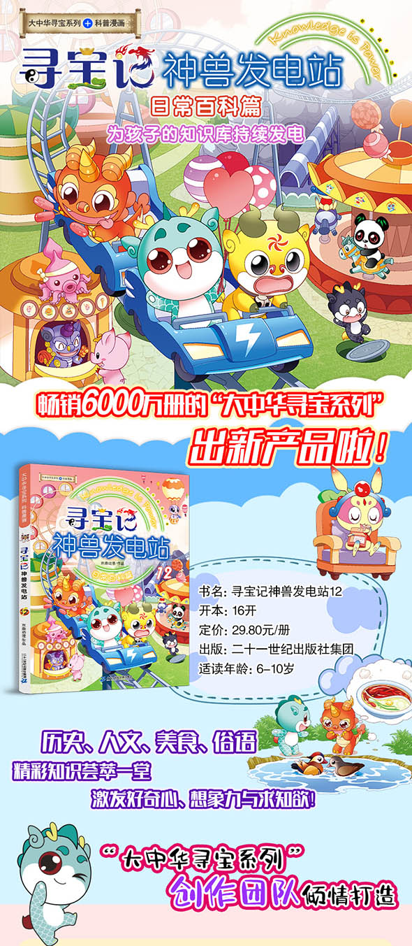 《寻宝记神兽发电站12》是一部集知识性与趣味性于一体的漫画小百科。每个章节以神兽之间轻松、搞笑的互动场景为切入口,讲述我们生活中那些稀松平常事物背后的故事。不仅帮助小读者增长知识、开阔视野,还能培养他们的好奇心与求知欲。 本书一改科普读物枯燥乏味的表现形式,通过趣味漫画和逗趣小故事,另类讲解有趣又实用的小知识。同时知识页采取“手账”的排版形式,画面更加生动有趣,提升孩子的阅读兴趣。让小读者分分钟化身朋友圈中的“知识大神”,在快乐阅读的同时收获知识,感受知识带来的乐趣。