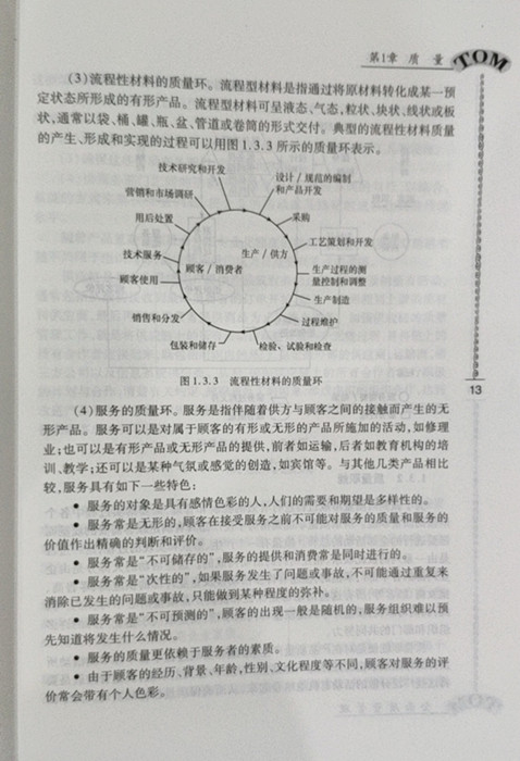 《全面质量管理》为中国质量协会组织编写的新一轮质量管理培训普及教育指定教材。全书共分三个部分,分别介绍了质量、质量管理、全面质量管理、质量管理体系的基本概念和基本知识;详述了生产和服务现场质量管理的主要活动,并将5S活动作为现场管理的重要基础工作单独成章;介绍了质量管理常用工具的方法。本书既为新一轮全面质量管理普及教育的培训教材,也可作为各类组织的管理干部、技术人员和生产服务现场的基层员工学习质量管理知识的入门读本。