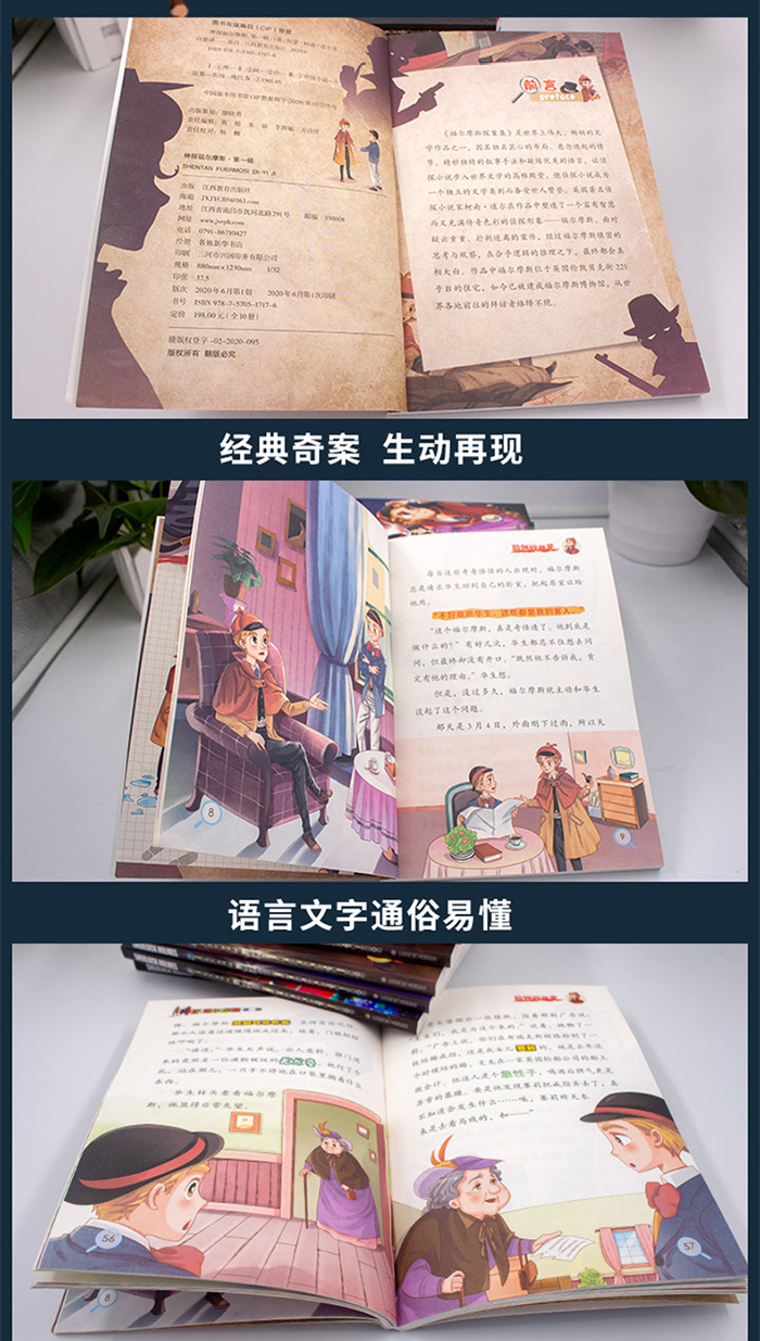《神探福尔摩斯》是一套专门为7~12岁青少年量身打造的侦探小说,全书共10册,他是英国著名侦探小说家阿瑟·柯南·道尔创作的小说集,也是世界文坛中脍炙人口的探案佳作,距今已有百年历史,它开启了侦探小说历史的黄金时代,先后被译成57种语言出版,风靡全球,畅销世界各地,备受读者的推崇和喜爱,是侦探推理小说中的经典之作。《福尔摩斯探案集》被广大探案迷誉为推理小说中的“圣经”,在漫长的时间洗礼中,福尔摩斯已经成为了人们心中神探的代名词。