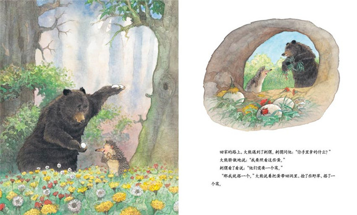 作为名闻遐迩的图画书创作搭档,德裔荷兰儿童文学作家、插画家迪特尔·舒伯特与妻子英格里德·舒伯特对动物世界似乎情有独钟。他们用明净柔和的水彩颜色和无数充满情味的画面细节,为读者奉上了一系列奇妙的动物童话与动物知识故事。而在所有这些作品中,陆续出版于世纪之交的《一只漏洞的水桶》、《谁都有地方坐》、《海狸的巢儿》、《大熊捡的蛋》构成了一个尤为引人注目的动物故事合辑。该“系列”中生趣无限的自然场景、敦厚可爱的动物角色与幽默温馨的故事情节,赋予了这四本图画书以某种田园诗般活泼清丽的气息;而它们围绕着图画书丰富的叙事可能所展开的充满创造性的艺术探索,则使我们再次领略到了图画书叙事的独特魅力。