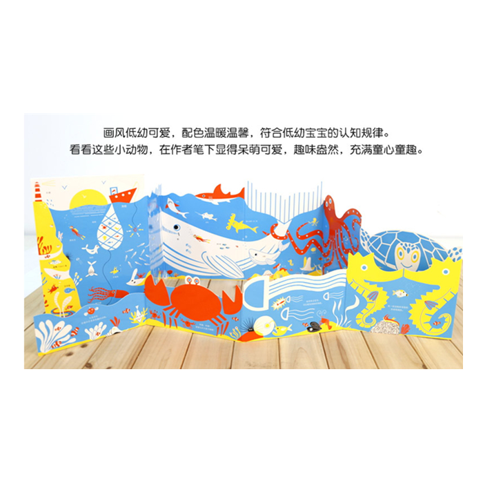 《宝贝亲近大自然拉拉绘本》采用异形风琴折页设计,共10个折页,打开全长超过2米,美轮美奂,极具视觉冲击力和艺术美感!