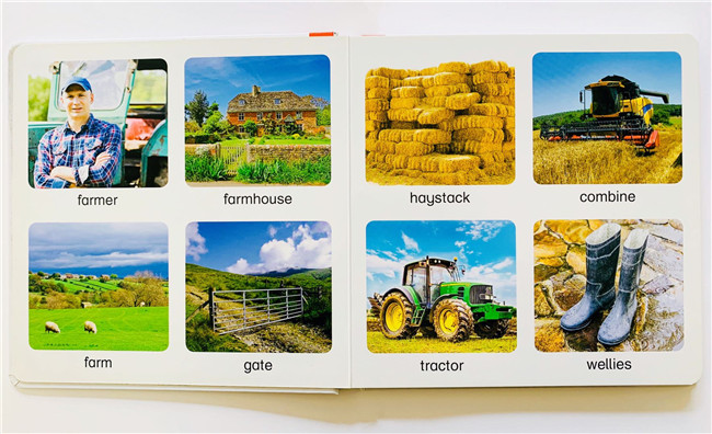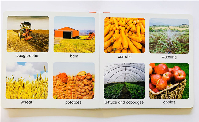 用迷人的40幅图片展示了一个生动全面的农场,从农场主开始,介绍了房屋、景色、农场动物、植物等。让孩子在小小年龄,认识宽阔的世界。