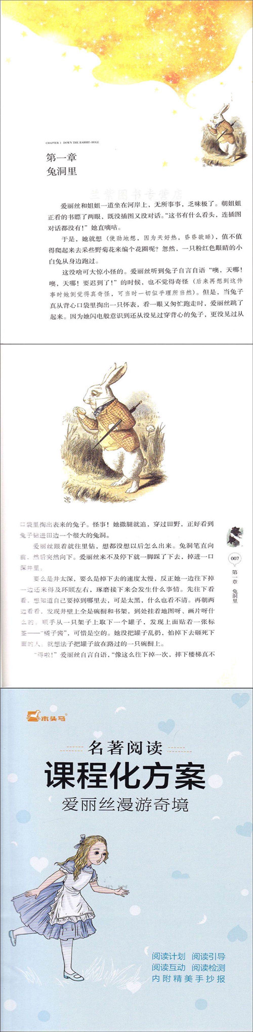 一位可爱的英国小女孩爱丽丝在百般无聊之际,发现了一只揣着怀表、会说话的白兔。她追赶着它而不慎掉进了一个兔子洞,由此坠入了神奇的地下世界。在探险的同时不断认识自 我,不断成长,在终于成长为一个“大”姑娘的时候,她猛然惊醒,才发现原来这一切都是自己的一个梦境。