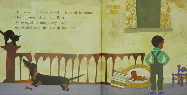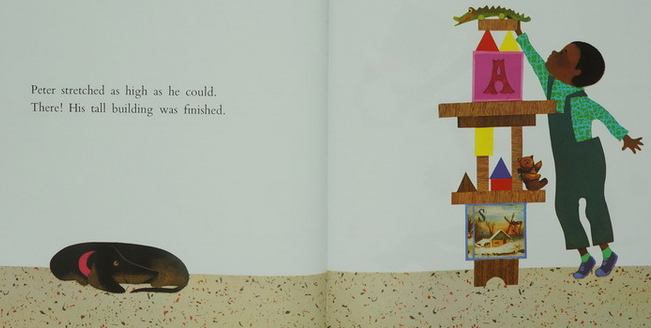 《Peter's Chair》讲述自从妈妈生了小妹妹,爸爸把彼得过去用过的东西都全部漆成了粉红色,彼得觉得被冷落了,他非常难过,于是他决定带着自己的小椅子离家出走。当他想坐进小椅子时,发现自己已经长大,坐不进去了,于是他想通了,带着小椅子,高高兴兴地回家,跟爸妈和妹妹团圆了。跟着爸爸一起把小椅子漆成粉红色。