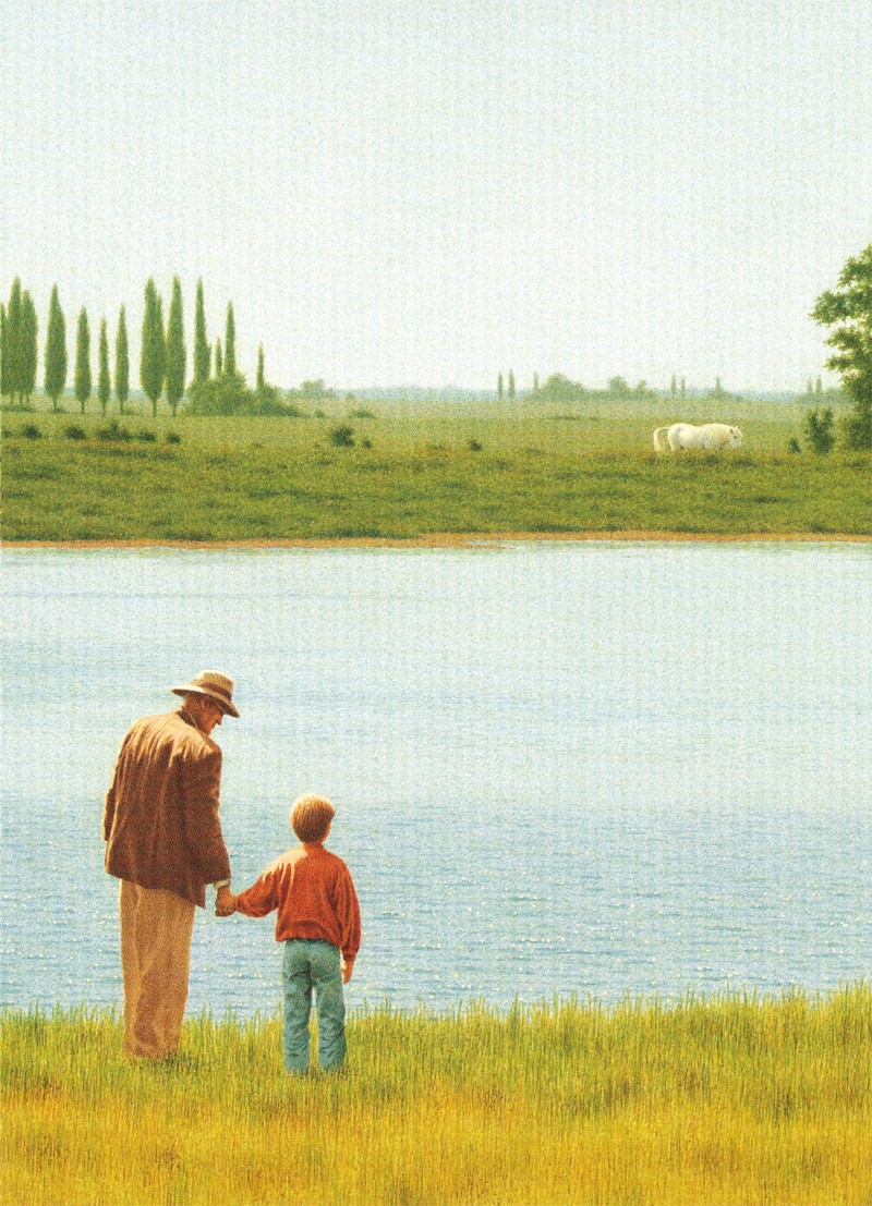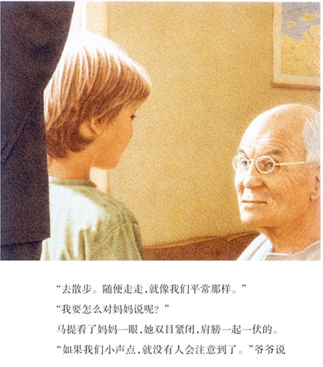 爷爷双目紧闭,面色惨白,躺在床上动也不动。亲友们围绕在旁边,泪流满面,只有七岁的小孙子马提没有哭。”我们去散散步,好吗?”爷爷说着突然从床上坐起来,牵起了马提的手。马提和爷爷开始了一段有趣的冒险:他们漫步田野,用裤子在小溪里抓鱼,捕获一匹半黑半白的小马,凭借寻宝图挖出了宝藏,还从一群侏儒海盗手中惊险逃脱……一路上,爷爷的身体渐渐缩小,直到被马提捧在手心、用鼻孔吸进了身体里。马提明白,我们所爱的人不会真正死去,他们会永远陪在我们身边。这是一次天马行空的告别旅行。作者将离别的创伤巧妙地用爱缝合,把一个本应悲痛的故事述说得温馨、俏皮,以超现实的笔法引发孩子对生命的思考和对生活的热爱。