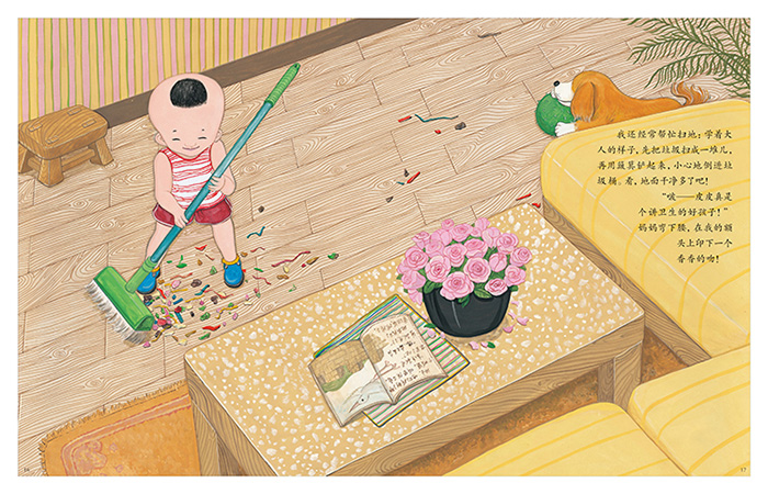 《给妈妈捣乱》塑造了一个调皮捣蛋的小男孩形象,充分展示了孩子的童真和调皮天性,诙谐幽默、生动活泼的文字与图画,留给家长深深的思考——该如何应对孩子的“调皮”?《给妈妈帮忙》塑造了一个满怀热情帮忙大人做事,却也经常会出错、经常给大人“帮倒忙”的小男孩形象。转折事件的设计,将孩子“力不从心”的心理和“想做好”的美好愿望刻画得淋漓尽致。一方面可引起孩子的情感共鸣;另一方面能帮助家长更深地了解孩子的内心,达到阐释主题的目的:在孩子努力想要尝试却力不从心的时候,爸爸妈妈应该理解和鼓励孩子,帮助孩子建立自信,引导他们跨越生活中的小溪流,实现美丽的成长。