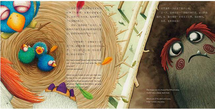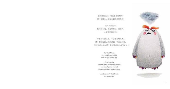 《坏情绪,快走开》是儿童心灵成长书系的其中一本,此绘本荣获多项国际大奖,是国际作者,来自西班牙的ELSA与我们的合作开端,这本书是关于儿童心理学的绘本,作者用幽默的故事和精美的绘画,让孩子们明白了坏情绪是可以驱散的,做一个阳光少年是多么开心的事情。孩子们,你遇到过“坏情绪”吗?“坏情绪”也想找伙伴一起玩耍,他找到了小朋友、小松鼠、小鹿还有小鸟一家,但都被一句神秘的咒语赶走了。 “坏情绪”在及其沮丧的时候遇到了魔仙,魔仙改变了“坏情绪”,自此改名为“好心情”。“好心情”靠自己的改变终于受到了孩子们的欢迎。
